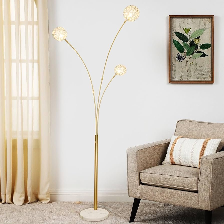 Dimmable Industrial Floor Lamps for Living Room, Gold Tree Standing Tall Lamps
